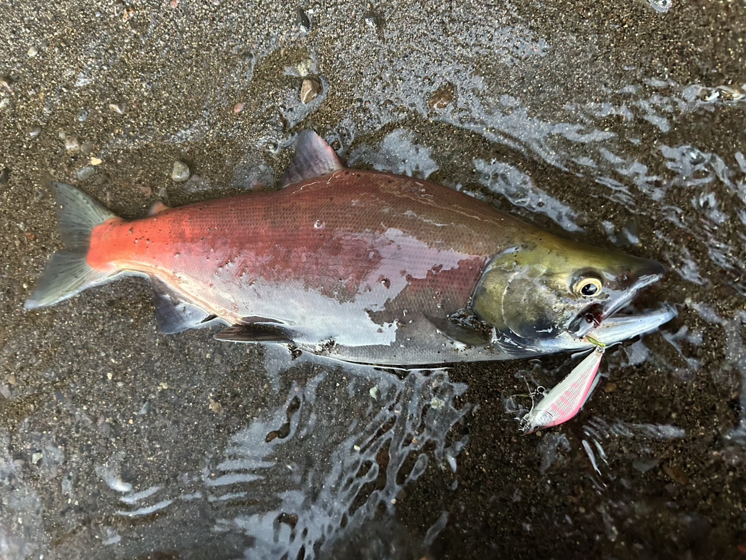今まで釣ったことのないヒメマスを狙い、寒い中何とか1匹釣れました(^_-)-☆